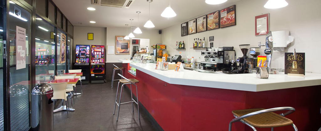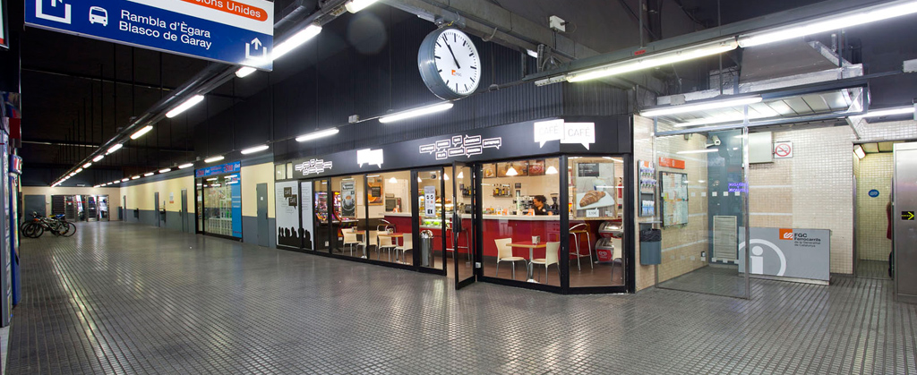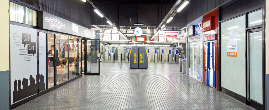 Local situat al vestíbul inferior de l’estació de Terrassa Rambla de la línia Barcelona-Vallès, abans de la barrera tarifària.
