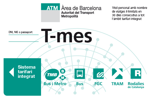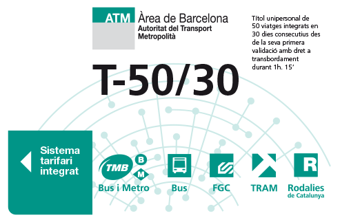 Títol personal i intransferible, amb un nombre il·limitat de viatges integrats en 30 dies consecutius, a les zones delimitades per la primera validació, en tots els modes de transport segons les zones per les quals es transiti (pagament màxim 6 zones).