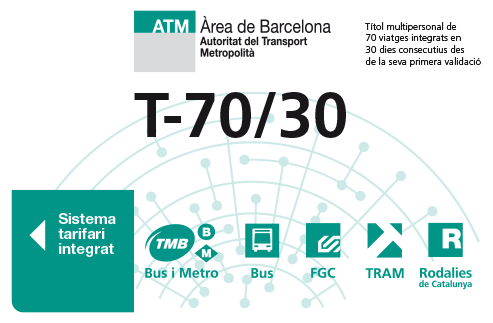 Títol multipersonal i horari, de 70 viatges integrats en 30 dies consecutius des de la primera validació, en tots els modes de transport segons les zones per les quals es transiti (pagament màxim 6 zones).