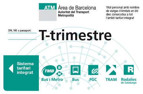 T-dia: títol unipersonal, amb un nombre il·limitat de viatges integrats durant 24 hores a partir de la primera validació, a les zones delimitades per la primera validació, en tots els modes de transport, segons les zones per les quals es transiti (pagament màxim 6 zones).